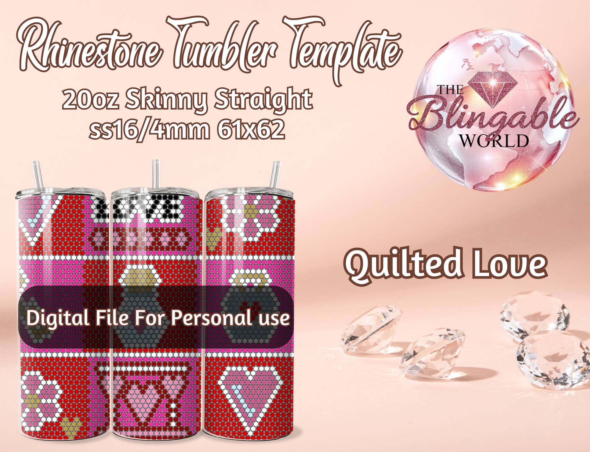 Quilted Love - 20oz Tumbler Template *Digital File*